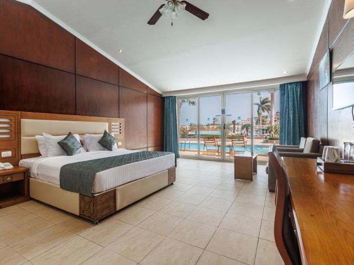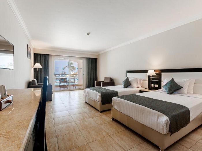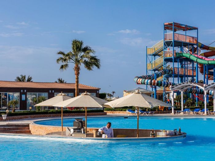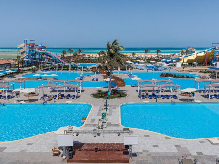 Намира се на 18 км. от летище Хургада, на 15 км. от центъра на Хургада, на брега на морето. Последно реновиран през 2025 год.