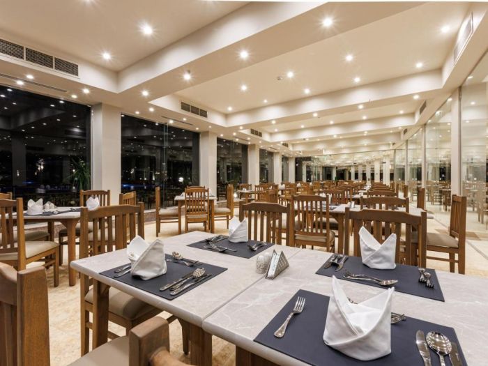 Хотелът разполага с общо 459 стаи, разположени в основна пететажна сграда и вили, от които 140 Standart Sea View rooms (49 m2), 144 Standart Pool View (49 m2), 93 Standart Side Sea view (34 m2), 13 Junior Suites ( едно общо помещение 60 m2), 27 Family room (едно общо помещение 60 м2), 24 Bungalow room (50 m2), 28 Bungalow Family room ( едно общо помещение 60 м2). Всички стаи са оборудвани с климатик, телевизор, телефон, баня с душ, сешоар, сет за чай/кафе, минибар (зарежда се с вода), сейф. Почистване на стаите и смяна на кърпите - всеки ден, смяна на спално бельо – 2 пъти в седмицата.
