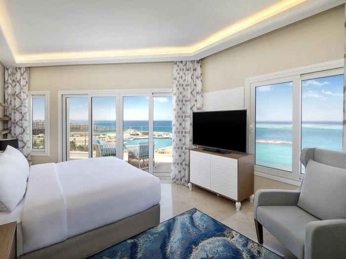 Намира се на 13 км. от летище Хургада, на 24 км. от центъра на Хургада, на брега на морето с частно пристанище.
