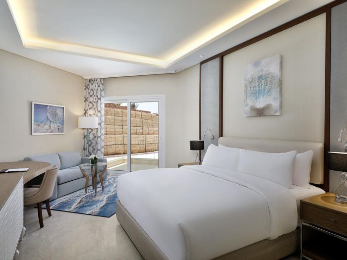 Хотелът разполага с общо с 495 стаи разположени в основна сграда и вили, от които Guest Rooms( 33m2),Deluxe Room Sea view (гледка море 33м2), Superior Room Sea view ( 33m2), Premium Room Sea View (44m2), Family Junior Suite (48 m2),King Accessible Guest Room (инвалидни стаи), Royal Villa (132m2). Всички стаи са оборудвани с вана, сешоар, централен климатик, телевизор, телефон, радиоприемник, мини-бар, сейф (на рецепцията - безплатно), балкон или тераса, почистване на стаите – ежедневно.