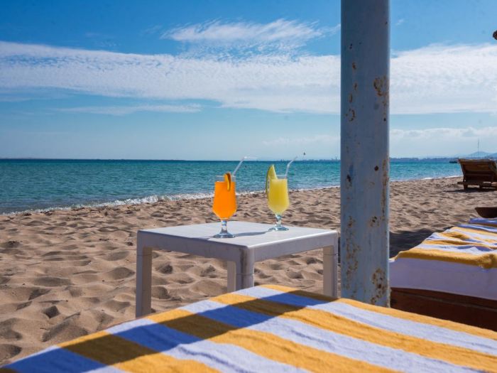 Собствен, пясък. Чадъри и шезлонги при басейна и на плажа - безплатни. Плажни огради за защита от вятъра. Плажни кърпи – безплатно.