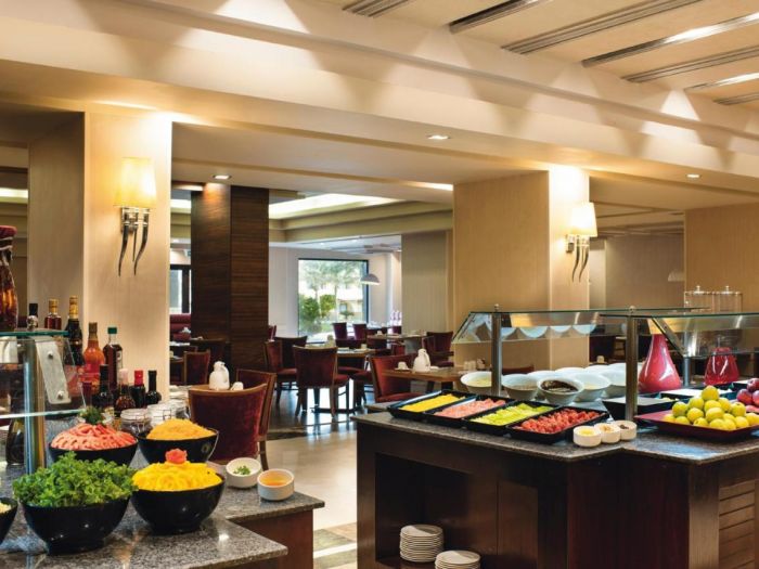Основен ресторант, 2 а -ла карт ресторанта, 5 бара (2 платени), 3 открити басейна (1 отопляем през зимния сезон), дискотека, тенис корта (с твърдо покритие), СПА център, магазини, 6 конферентни зали.