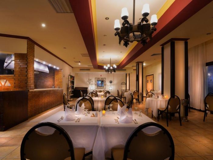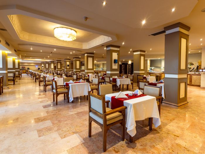 Основен ресторант, 2 а-ла-карт ресторанта (италиански и азиатски- срещу заплащане/с предварителна резервация, съгласно концепцията на хотела/ 1 безплатно посещение на 1 от ресторантите при минимум 7 нощувки), 4 бара (1 бар 24h ), 2 открити басейна, водни пързалки, тенис корт, конферентна зала, магазини.