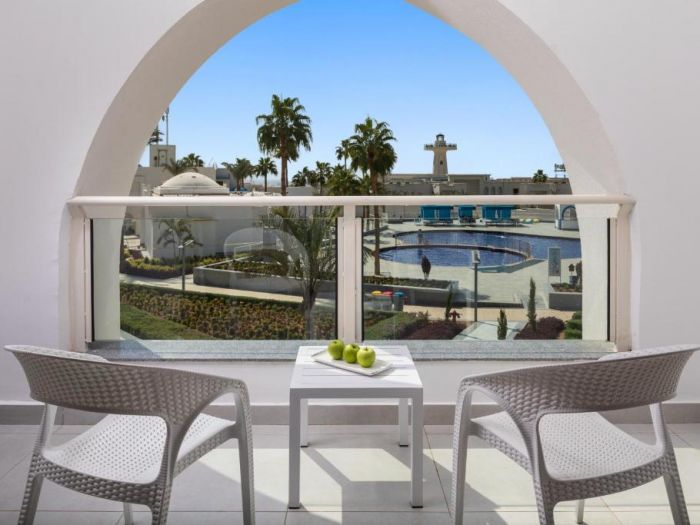 Намира се на 7 км от летище Шарм ел Шейх, на 14 км от центъра на Наама бей, на 4 км от площад Сохо, на брега на морето.