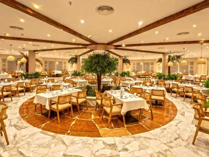 Основен ресторант, 4 а-ла-карт ресторанта (рибен, турски, италиански, азиатски–с предварителна резервация, 1 безплатно посещение на 1 от ресторантите при минимум 7 нощувки, 5 бара, 4 открити басейна (2 отопляеми през зимния период), водни пързалки, СПА център, магазини.