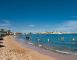 Собствен, пясъчен, кей. Чадъри, шезлонги и плажни кърпи на плажа и при басейна – безплатно.