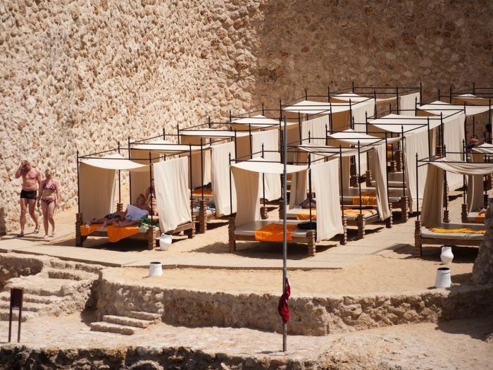 Собствен, коралов. Чадъри и шезлонги на плажа и при басейна - безплатно. Плажни кърпи - безплатно.