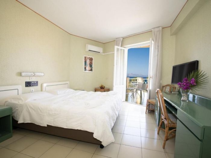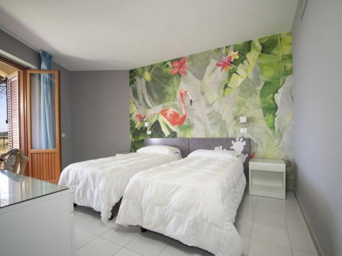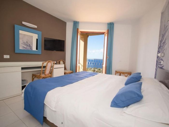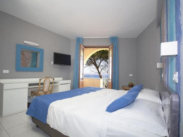 Стаите в Perla Del Golfo Resort Hotel са обзаведени в светли цветове и подове с теракот. Всяка включва самостоятелна баня със сешоар.