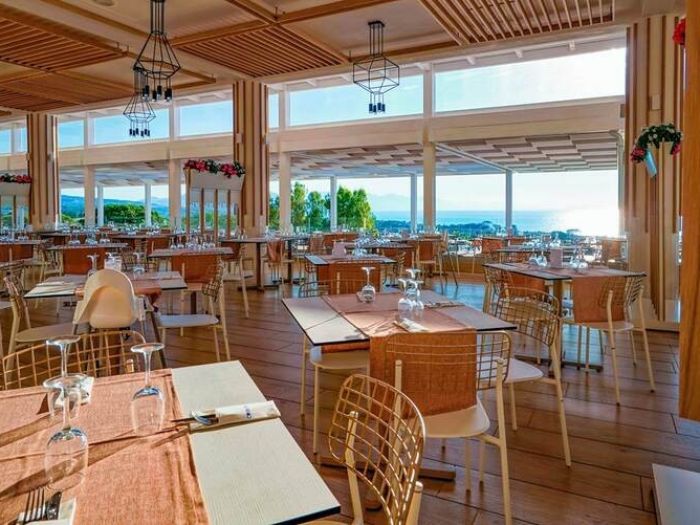 На територията: няколко вида ресторанти(пицария, медитериянска кухня и други с различни видове гледки и обстановки). 3 басейна,( детски басейн, инфинити басейн, и още един голям отркит с панорамна гледка към морето). Аква Парк за децата с различни вожни парзалки. Анимации за деца и възрастни(вечерни програми, аква спортове, зумба и латино танци, футбол и други). Детски клуб. Спа.