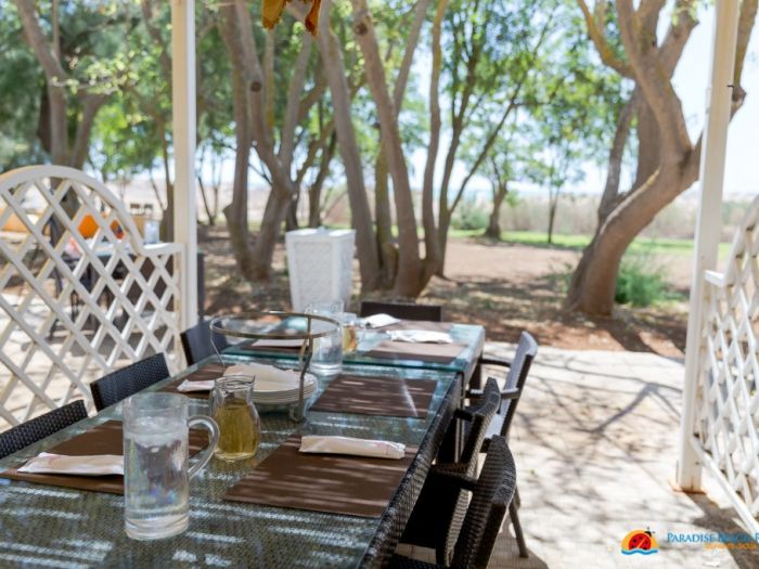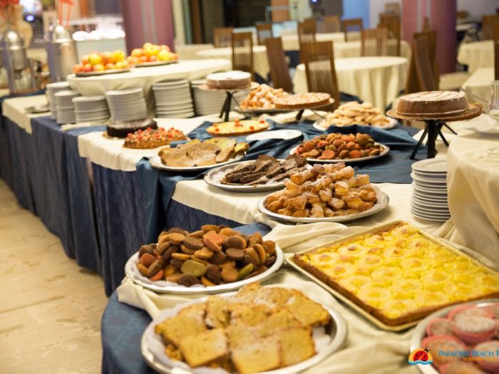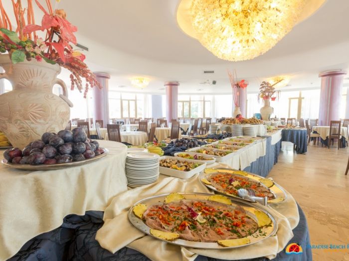 Закуската в Paradise Beach Resort Selinunte е на шведска маса и се сервира в ресторант с изглед към басейна. Грил край плажа отваря врати през лятото за разнообразие от местни ястия от прясна риба и месо.