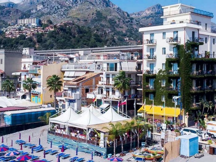Плажът на хотела се намира само на 10 метра от него, а летището на град Катания е на 68 км.
