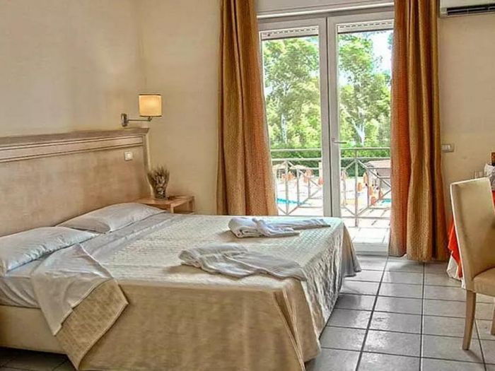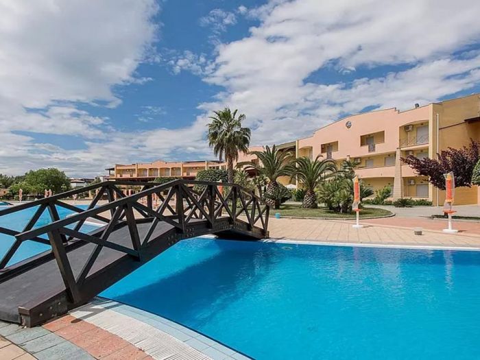 Красиво 4-звездно ваканционно селище, наскоро обновено и сгушено в зелен оазис в сърцето на древната Маня Греча, до борова гора, която го свързва с белия пясъчен плаж, на Йонийско море. Разполага с басейн, активности за всяка възраст с особено внимание към децата, за които се организира футболно училище, олимпиади, творчески работилници, танци, партита с пяна и др.