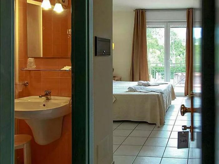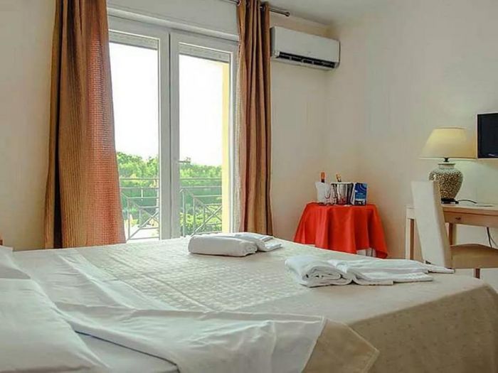Хотелът предлага на своите гости 146 елегантни и удобни стаи, които могат да настанят от двама до петима души, разположени в два корпуса, в двуетажни сгради с асансьори. Всички стаи са оборудвани със самостоятелен санитарен възел, автоматичен климатик, телефон с директна линия, сателитна телевизия, бар-хладилник (зареждане при поискване), сешоар и сейф. Всички стаи имат малка тераса, оборудвана с маса и столове, която гледа към хълма или басейна.