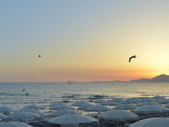 Собствен пясъчен плаж на 1 км от хотела. Чадъри и шезлонги при басейна – безплатно, на плажа – срещу заплащане. Шатъл до плажа само през август.