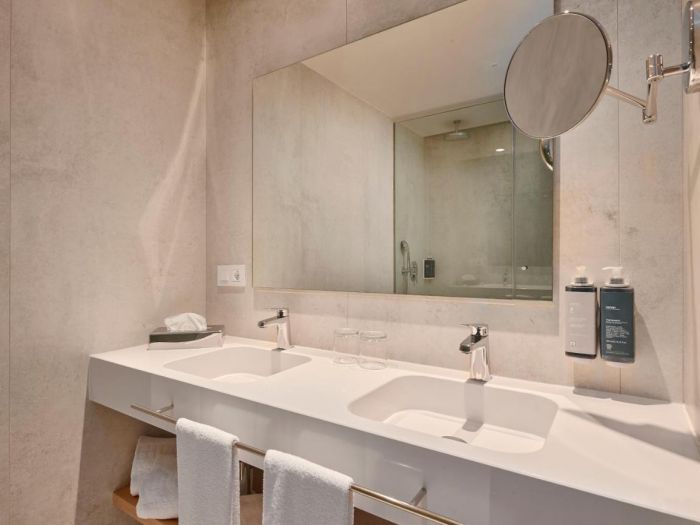Всички стаи са оборудвани с климатик, телевизор, телефон, баня с душ, сешоар, минибар (платен), сет за кафе/чай, сейф, балкон/тераса.
