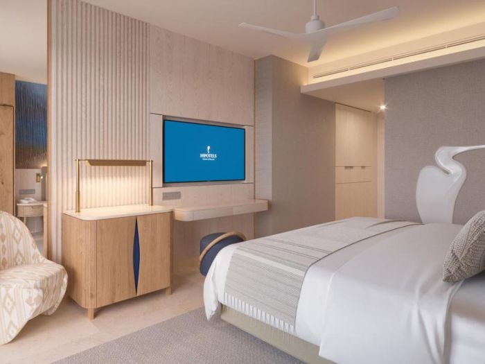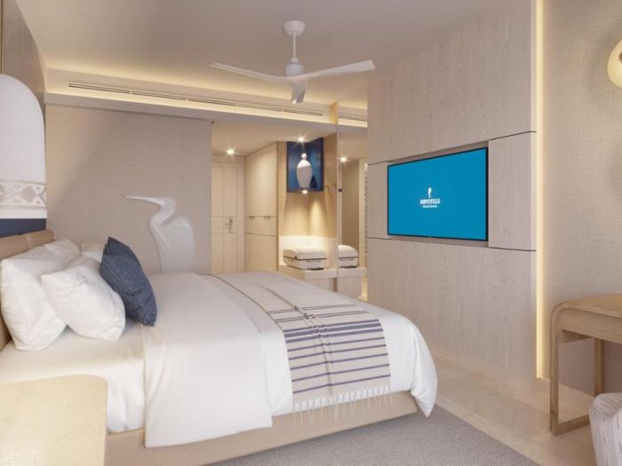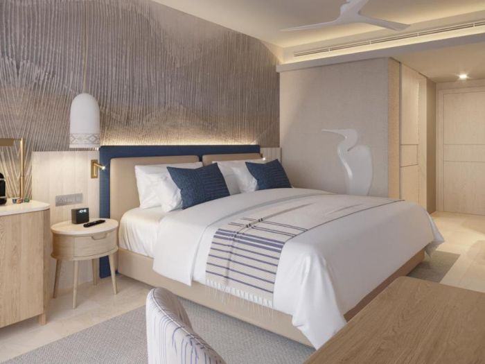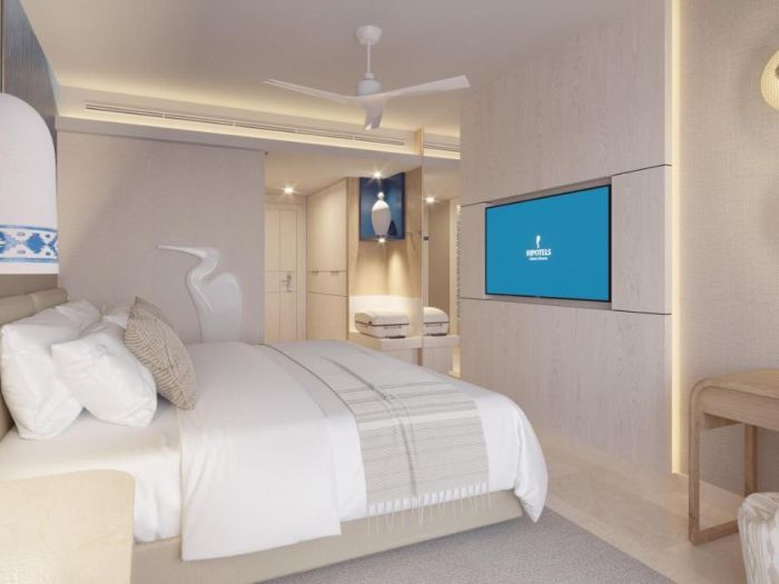 Хотелът разполага с една основна сграда и 220 стаи. Типове стаи: икономична (23 кв.м), двойна стая със страничен изглед море (23 кв.м), двойна стая със страничен изглед към басейн/море (23 кв.м). двойна стая Select (23 кв.м), Фамилен сюит (46 кв.м.). Всяка стая е оборудвана с климатик, телевизор, телефон, сешоар, малък хладилник, балкон или тераса.