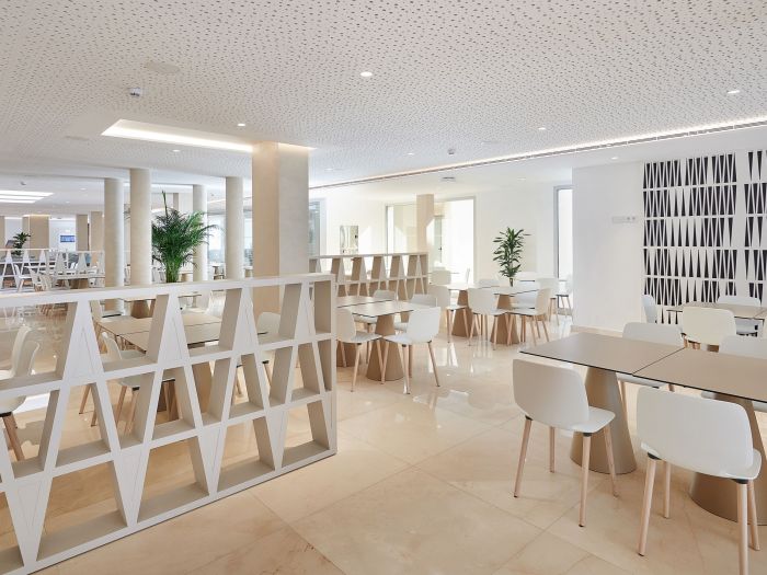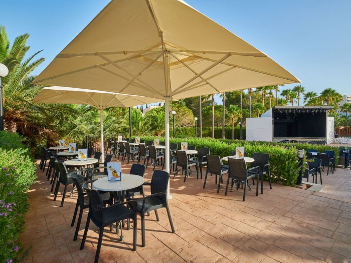 Основен ресторант Майорка, а-ла-карт ресторант La Finca (мексиканска и ориенталска кухня. Ресторантът отваря в зависимост от заетостта и е работи само за вечеря (с предварителна резервация на рецепция), Hipotels Mediterraneo Club (голямо разнообразие от изискани вкусове, характерни както за испанската, така и за международната кухня и се предлага специалнo диетичнo меню). Ресторант Mediterraneo Cafeteria (разнообразно меню с пици и закуски, както и голям избор от напитки и коктейли), Pool Bar |Mallorca (Барът до басейна предлага напитки и сладолед през целия ден.), 3 бара, 2 открити басейна, Wi–fi (в лоби и в общите части на хотела).