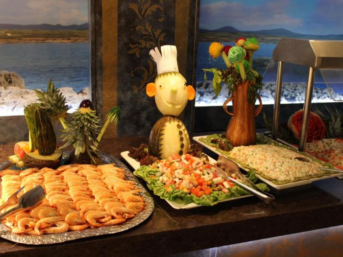 Рецепцията на хотела работи 24 часа, общите помещения са климатизирани, хотелът предлага WI-FI срещу заплащане, ресторант, бар на басейна, открит басейн, тераса с шезлони и чадъри на 4-ти етаж, зала за багаж.
