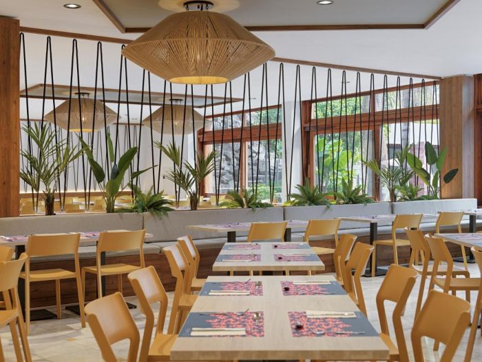 Основен ресторант, 3 бара, 2 открити басейна, конферентна зала.