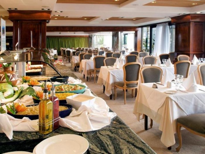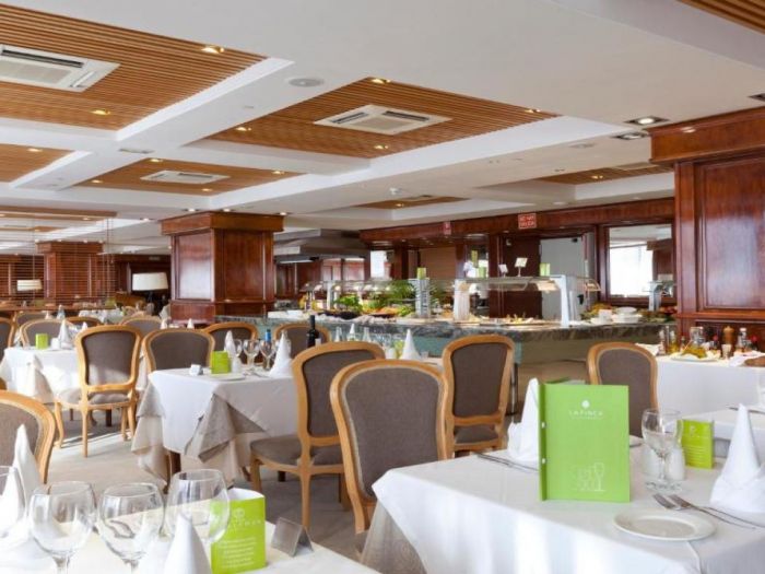 Хотелът разполага с основен ресторант със закуска и вечеря на шведска маса, предлагащ разнообразие от международна и испанска кухня. Организират се тематични вечери.