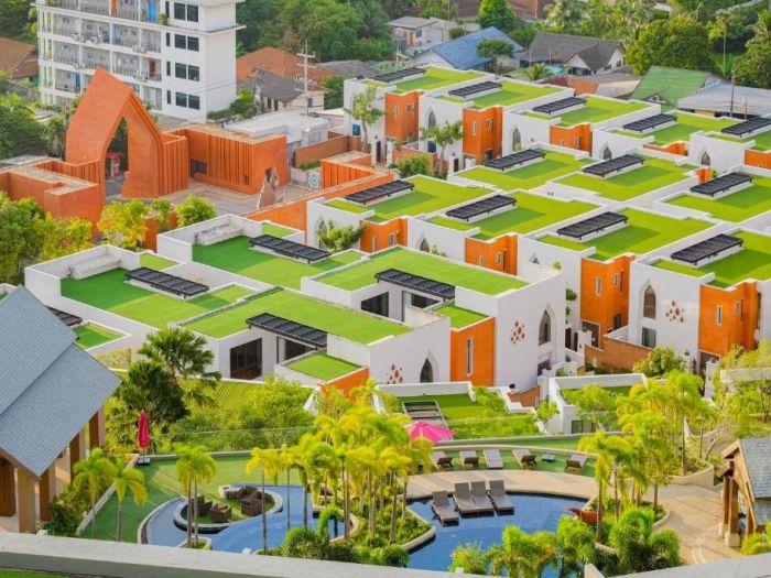 На територията на хотела: Общо 6 плувни басейна, четири от които на покрива, детски басейн, основен ресторант, бар на басейна, бар на покрива с невероятна панорамна гледка, бар на ниво лоби (сервират Starbucks кафе), сауна, 2 фитнес зали, 2 детски клуба, зона за работно пространство, библиотека.