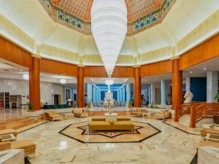 Основен ресторан Le Grenadier, а ла карт ресторант L'Olivier със средиземноморска кухня (платен, работи през летния сезон), а ла карт ресторант Le Laurier с тунизийска кухня (гостите могат да ползват едно безплатно помещение с предварителна резервация), лоби бар El Bey, бар басейн, снек бар, бистро бар La Vague, мавританско кафене, анимация, конферентни зали, сувенирен магазин, СПА център, химическо чистене, външен и вътрешен басейн.