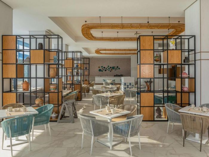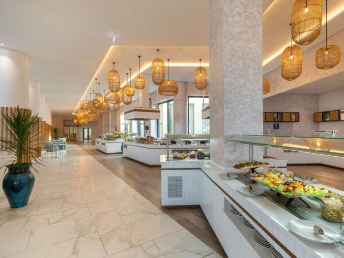 Основен ресторант The Kitchen, а-ла-карт ресторант La Luce с италианска кухня (само през висок сезон, 1 безплатно посещение при 7 дневен престой на AI, с предварителна резервация), а-ла-карт ресторант с морска френска кухня Seashore (само във висок сезон, 1 безплатно посещение при 7 дневен престой на AI, с предварителна резервация), а ла карт грил ресторант до басейна The Vibe (само във висок сезон), лоби бар The Drift с напитки и снакс, пъб Mulberry Tavern, бар басейн Dive In (във висок сезон), два открити басейни, единият от които е с морска вода и swim up бар, закрит басейн (отопляем през зимата, с морска вода), денонощна рецепция, лека анимация с жива музика и фитнес активности, конферентна зала, игрална зала, СПА център, сувенирен магазин, обмяна на валута.