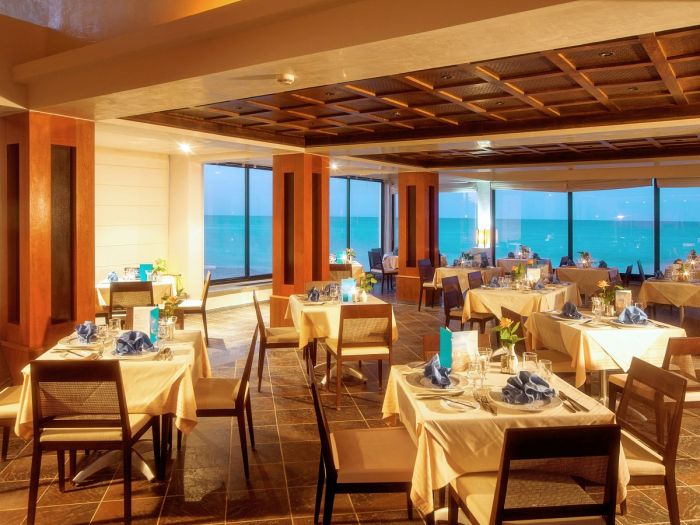 Рецепцията и основният ресторант са разположени в основната сграда, като стаите там са с изглед към морето, басейна и хотелската част. Допълнителната/анекс сграда се намира зад основния блок и стаите там са с изглед към градината.