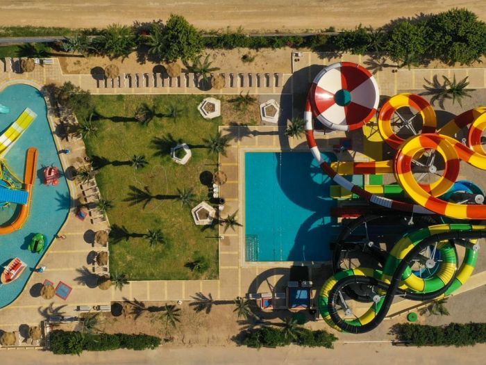 Вилното селище разполага със собствен плаж и 24 хектара градина. СПА и wellness център и над 10 магазина, 3 тенис корта, 3 открити плувни басейна, 1 закрит плувен басейн, детски мини клуб, аквапарк, мини голф, волейболно игрище, кино, театър, нощен клуб и още много атракции предлага неограничени възможности за забавления както за малки, така и за големи!