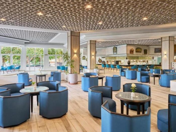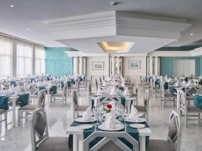 Хотелът разполага с основен ресторант, 1 а-ла-карт ресторант (може да се ползва безплатно веднъж за 7 дневен престой с предварителна резервация), 6 барa, дискотека (напитките са платени), 2 открити басейна, закрит басейн, водни пързалки, СПА център, магазини, анимация, музика на живо, 6 конферентни зали, паркинг. Базата на изхранване е All inclisive - закуска, обяд и вечеря на шведска маса, междинни хранения; местни алкохолни и безалкохолни напитки. Комплексът притежава собствен пяъсен плаж. Чадъри, шезлонги и плажни кърпи на плажа и при басейна се ползват безплатно от гостите. За най-малките посетители са налични детски басейн, с 8 водни пързалки, мини клуб (4 -12 г.), мини дискотека. Безплатен Wi-Fi има на лоби бара и на рецепция.
