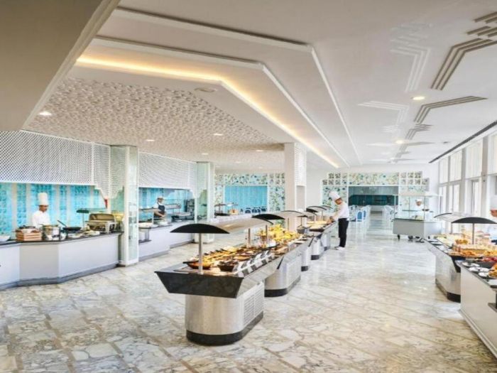 - Включва местни и международни ястия, салати, десерти