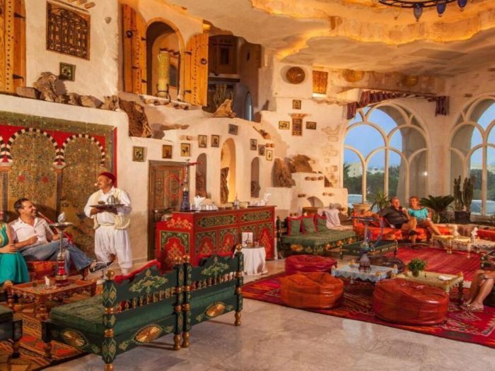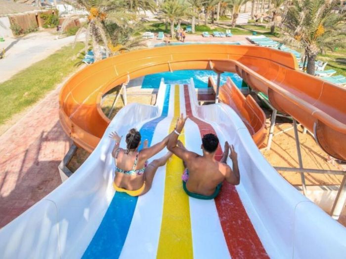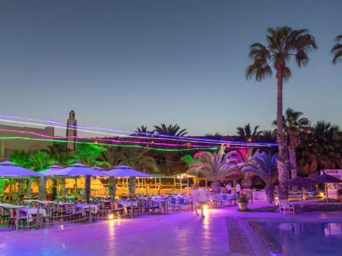 Основен ресторант, 2 а-ла-карт ресторанта (тунизийски и марокански – срещу заплащане/с предварителна резервация, съгласно концепцията на хотела/1 безплатно посещение на 1 от ресторантите при минимум 7 нощувки), 3 бара, мавританско кафене (срещу заплащане), открит басейн, 3 водни пързалки, закрит басейн (от 01.11 до 31.03), закрит басейн с морска вода в Таласо центъра (срещу заплащане), 2 конферентни зали и заседателна зала, магазин, обмяна на валута, денонощна рецепция, Таласо център.