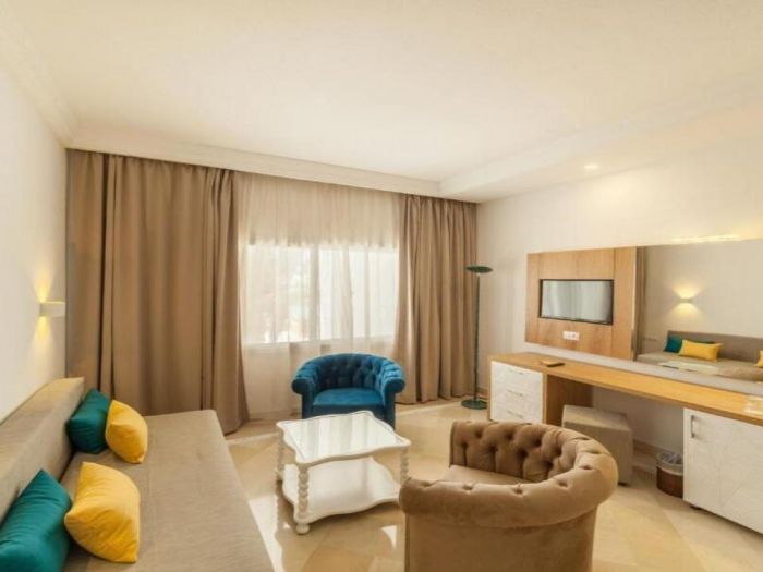 - Фамилна стая - 76 м2, максимално настаняване 4 възрастни + 1 дете, спалня + разтегателн диван, климатик, сейф, мини бар, Wi-Fi, мини бар, вана и душ, балкон.