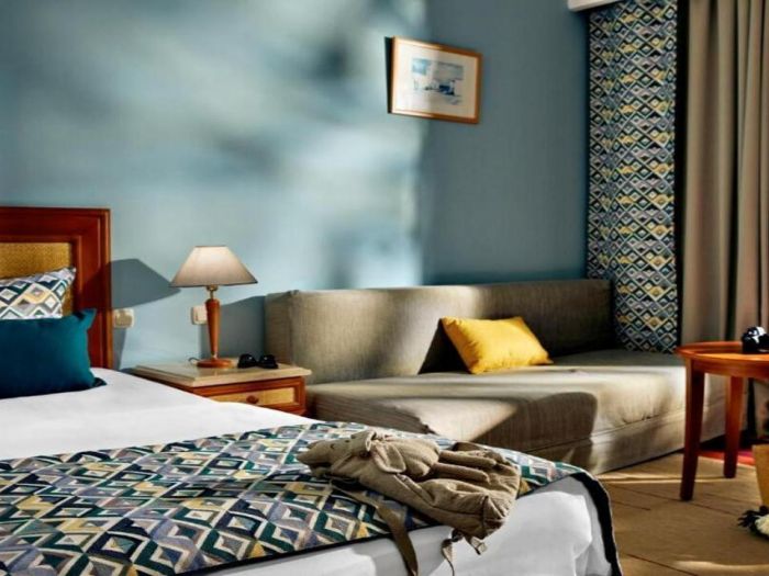 - Двойна стая с - 38 м2, максимално настаняване 3 възрастни, спалня, климатик, сейф, мини бар, Wi-Fi и балкон.