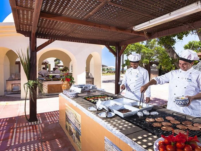 Изхранването е закуска, обяд и вечеря на блок маса с местна и интернационална кухня. Има възможност и за късна континентална закуска на плажа от 10.00 ч. Следобедна закуска се сервира от 15.00 ч. до 17.00 ч. Алкохолни и безалкохолни напитки се сервират от 10.00 ч до 0.00 ч.