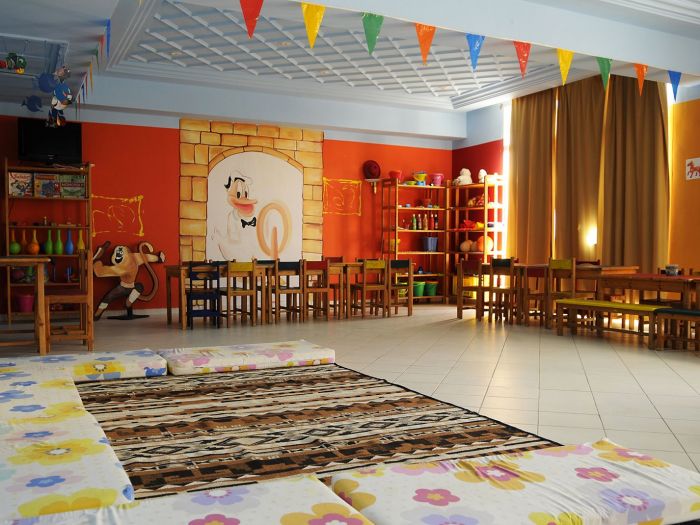 За децата: 2 детски басейна, мини клуб (4-12 г), бебешка кошара (безплатно, след предварителна заявка, според наличността), детско столче в ресторанта.