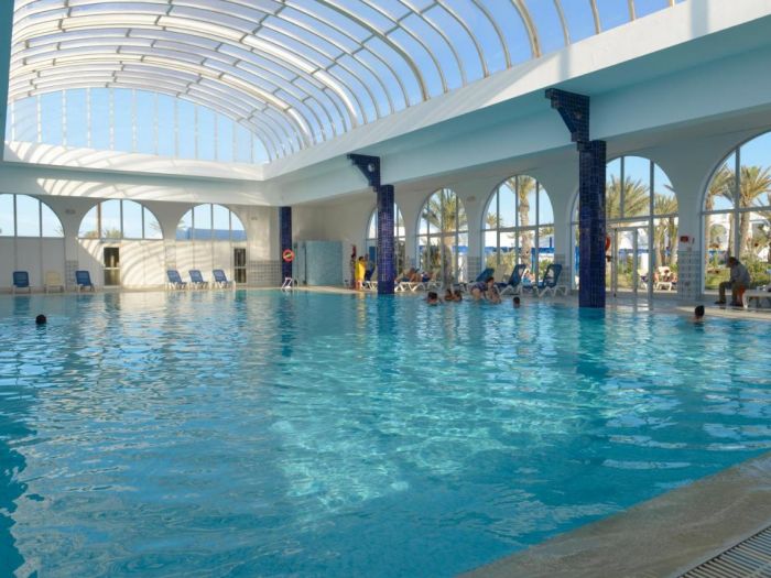 Основен ресторант Le Pacha, а ла карт ресторант Le Sultan с тунизийска кухня (платен, 1 посещение безплатно с предварителна резервация), снек бар, лоби бар, бар басейн Grand café (от април до октомври), плажен бар (от юни до септември), бар Amphitheatre (от май до октомври), мавританско кафене Narjess (наргиле срещу заплащане), 2 открити басейна, термален открит басейн в съседният хотел Monarque Dar Jerba Zahra 3*, открит басейн в съседният хотел Monarque Dar Jerba Zahra 3*, закрит басейн в Monarque Dar Jerba Zahra 3* (отопляем през зимата), 24-часова рецепция, конферентна зала, магазин, обмяна на валута.