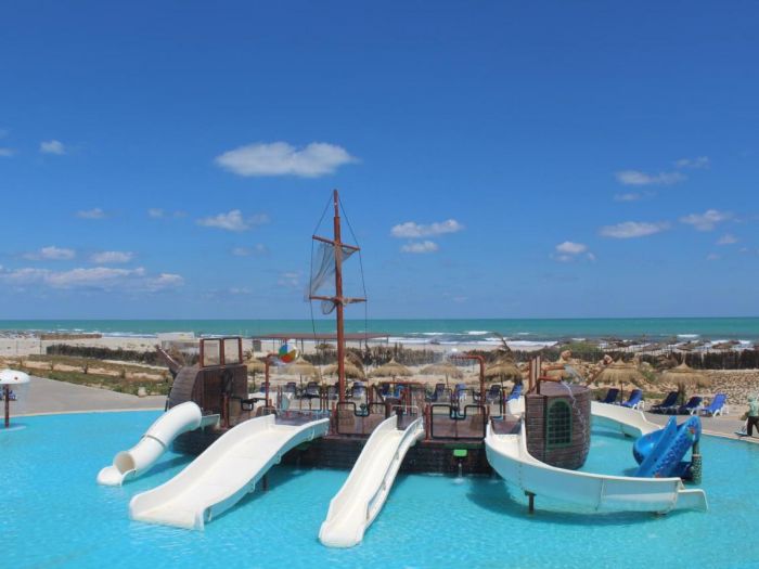 Основен ресторант, 1 а ла карт тунизийски ресторант (срещу заплащане, с право на 1 безплатно посещение за престоя с предварителна резервация), лоби бар, бар на басейна, плажен клуб /само във висок сезон/, еко бар /само във висок сезон/, мавританско кафене, кафетерия, 2 открити басейна, единият е оборудван с водни пързалки и детска секция, закрит басейн с джакузи в хотел Cesar Thalasso 4*, Таласо център на площ от 2800 кв.м., Аквапарк "Le Pirate" от 10 до 18 ч. (допълнително заплащане - за клиенти на хотелa се прави отстъпка), конферентна зала, банкомат, сувенирен магазин, обменно бюро, паркинг.