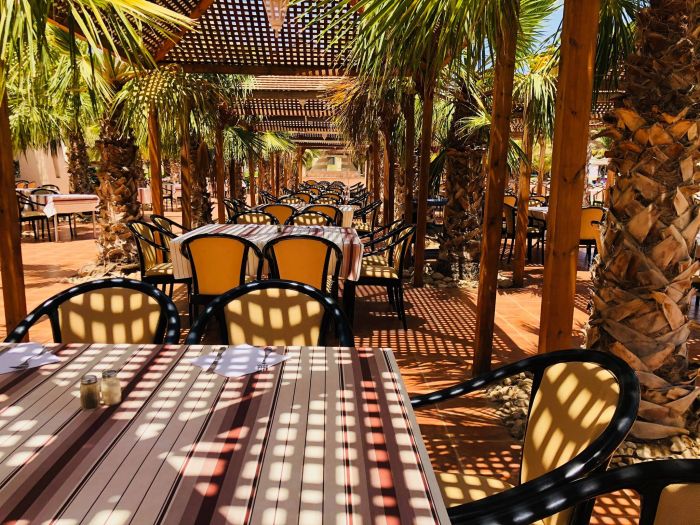 Основен ресторант, 2 а-ла-карт ресторанта (тунизийски и марокански – срещу заплащане/с предварителна резервация, съгласно концепцията на хотела/1 безплатно посещение на 1 от ресторантите при минимум 7 нощувки), 3 бара, мавританско кафене (срещу заплащане), открит басейн, 3 водни пързалки, закрит басейн (от 01.11 до 31.03), закрит басейн с морска вода в Таласо центъра (срещу заплащане), 2 конферентни зали и заседателна зала, магазин, обмяна на валута, денонощна рецепция, Таласо център.