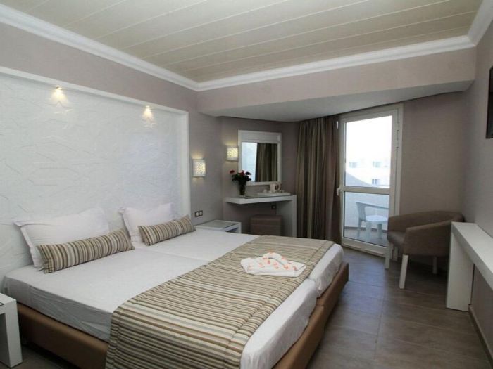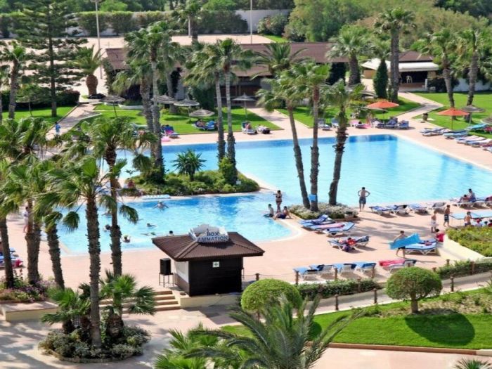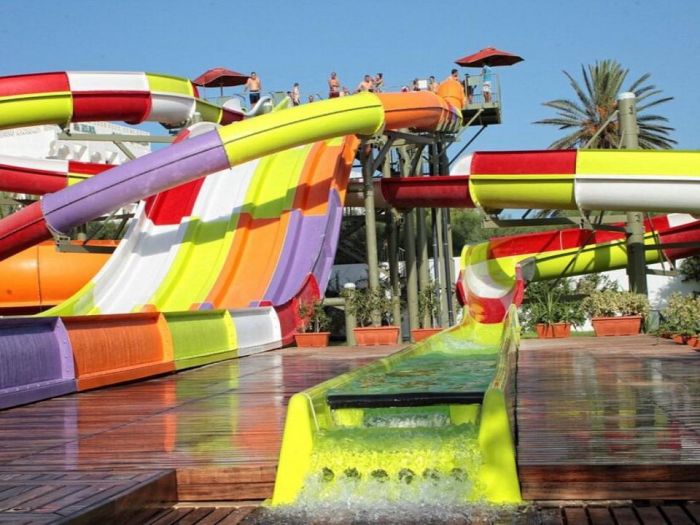 All Inclusive, няколко басейна, собствен аквапарк с водни пързалки, богата анимация, спортни терени и директен достъп до плажа. Хотелът е подходящ за семейства, особено с деца.