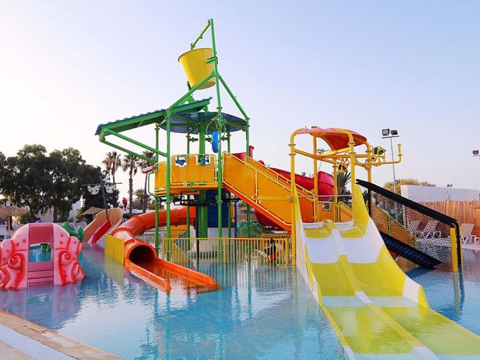 Основен ресторант L’Amandier, ресторант на плажа L’espandon, платен а-ла карт ресторанта Le Вourgainvillier (тунизийска кухня, едно безплатно посещение по време на престой), лоби бар, бар басейн, 2 открити басейна, 1 закрит басейн, аквапарк (състои се от 2 части: за бебета и малки деца с придружител и за големи деца и възрастни, безплатно за гости на хотела), СПА център, мултифункционално игрище, конферентна зала, паркинг.