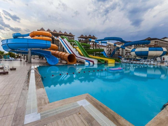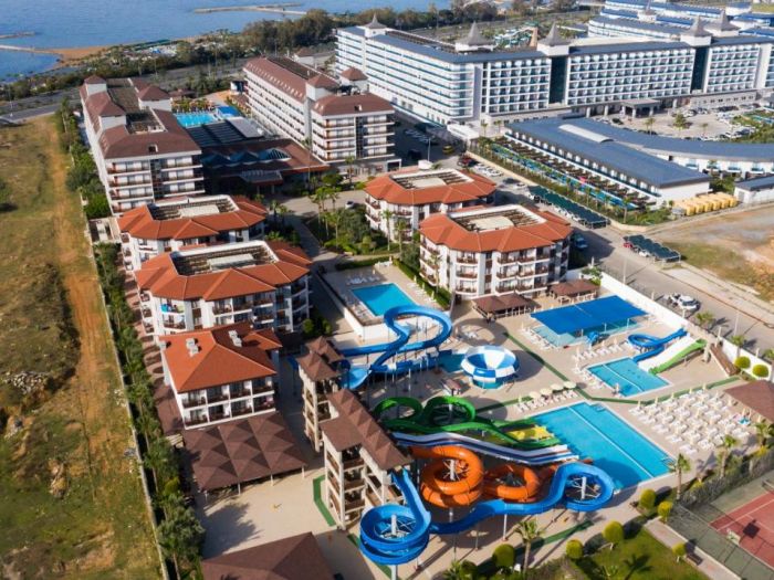 Хотелът се намира на 110 км. от центъра на гр.Анталия, на 100 км. от летище Анталия, на 17км. от гр.Алания, на брега на морето. Построен през 2011 г. с обща площ от 38 500 м2.