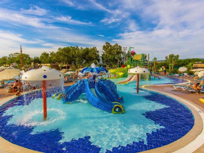 Основен ресторант, 2 а - ла - карт ресторанта (с предварителна резервация), 7 бара, 1 открити и 1 закрит басейна, водни пързалки, аквапарк – Eftalia Island, магазини, SPA център, дискотека, конферентна зала, паркинг. За децата: Детска площадка, мини клуб (4-12 г.), 2 детски басейна, водни пързалки. Безплатни услуги: Турска баня, сауна, фитнес, дартс, тенис на маса, баскетбол, плажен волейбол, аеробика, жиа музика, анимация, интернет. Платени услуги: Сауна, Масаж, фризьор, магазини, билярд, интернет кафе, компютърни и видеоигри, лекар, тенис корт, уроци по тенис, водни спортове. ПЛАЖ: Собствен, пясъчно - чакълест. Чадъри, шезлонги и матраци на плажа и при басейна – безплатно.