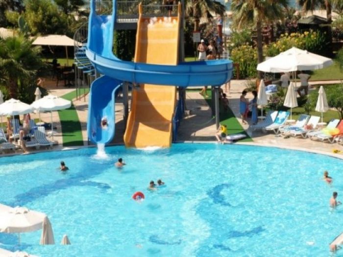 Хотелът разполага с основен ресторант, а-ла-карт ресторант, 3 бара, дискотека, плувен басейн, вътрешен плувен басейн, детски басейн, водни пързалки, СПА център,фитнес, турска баня, масажи, тенис корт, баскетбол, волейбол, амфитеатър, анимация, игрална зала, конферентна зала, паркинг, доктор, водни спортове. Безплатни услуги: турска баня, сауна, фитнес, всички дейности от анимационната програма, дискотека, тенис на маса, дартс, волейбол, билярд, водна гимнастика, аеробика, тенис корт. Платени услуги: масажи и други козметични процедури, всички водни спортове, игрална зала. За децата: мини клуб /4-12г./, детски басейн, анимация.