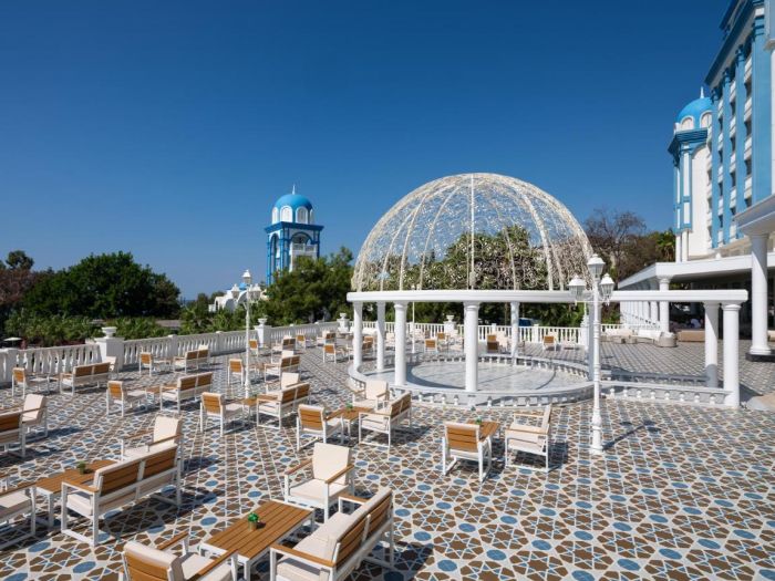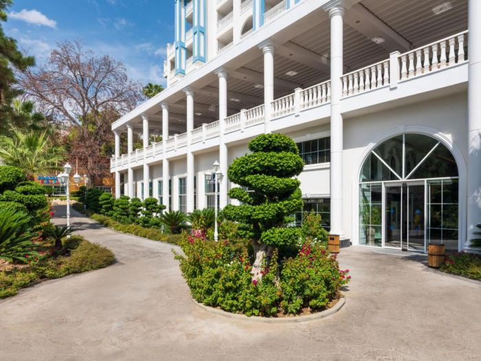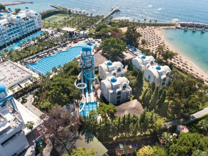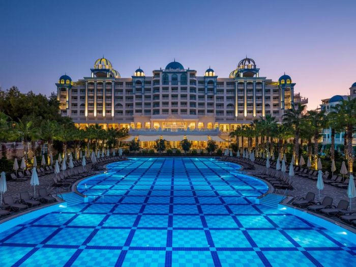 Основен ресторант, 6 а-ла-карт ресторанта (рибен, италиански– срещу заплащане)сладкарница, снек ресторант, гьозлеме, 5 бара (1 от които 24 часа), 2 открити и 1 закрит басейн, аквапарк с 4 водни пързалки, амфитеатър, СПА център, 13 павилиона на плажа, дискотека, магазини, 3 конферентни зали.