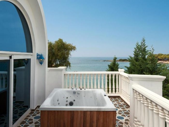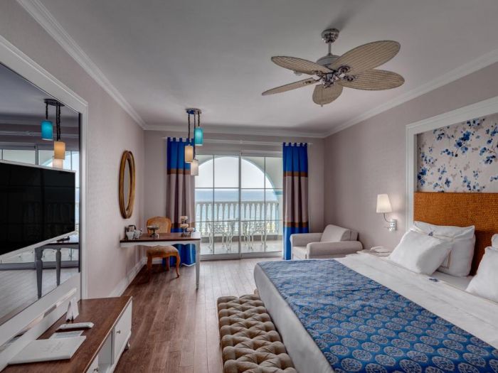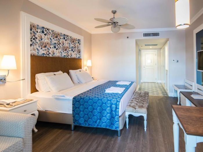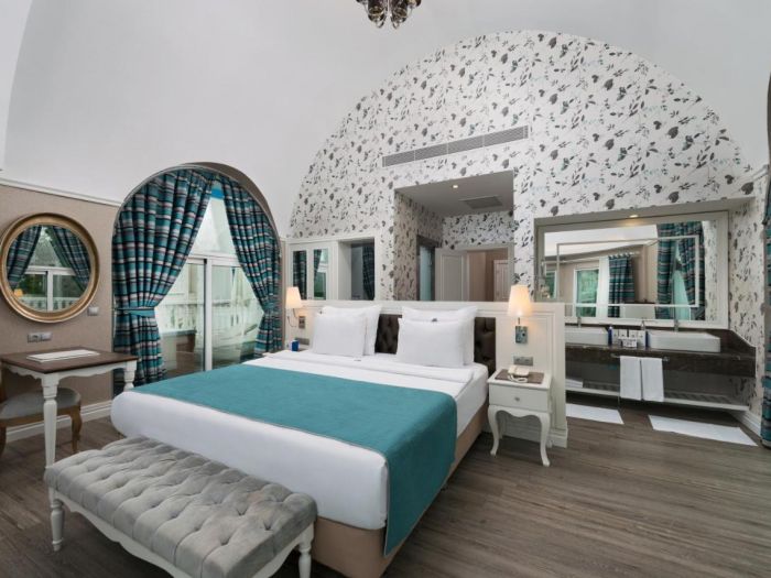 Стаи Main Building: Deluxe room (30 - 32 м2), Deluxe pool room (30 - 32 м2), Superior room (35 м2), Junior Suite room (1 спалня, 1 баня - 40 м2 ) Superior suite room (2 спални, 1 баня - 57 м2), Villa suite room (2 спални, 2 бани ( В деня на пристигане се предоставят плато с плодове и вино) - 62 м2), King suite room (2 спални, 2 бани + външно джакузи, мека бел, чадър и шезлонги (В деня на пристигане се предоставят плато с плодове и вино) – 64 - 80 м2)