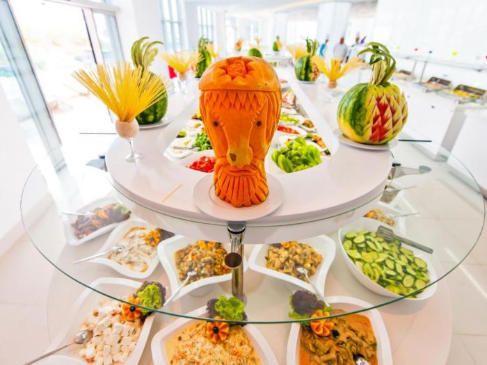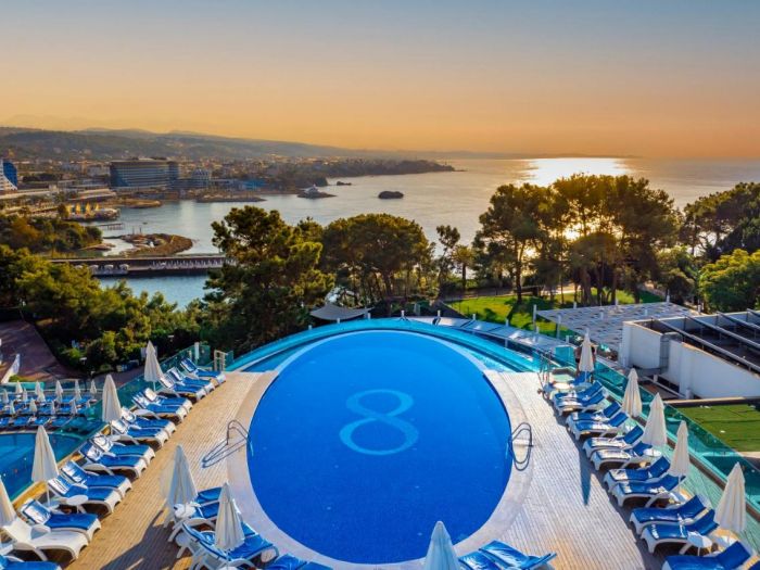 Основен ресторант, 2 а-ла-карт ресторанта (турски и рибен-съгласно концепцията), 9 бара, 3 открити басейна, Аква парк (16 водни пързалки за възрастни + 8 водни пързалки за деца).