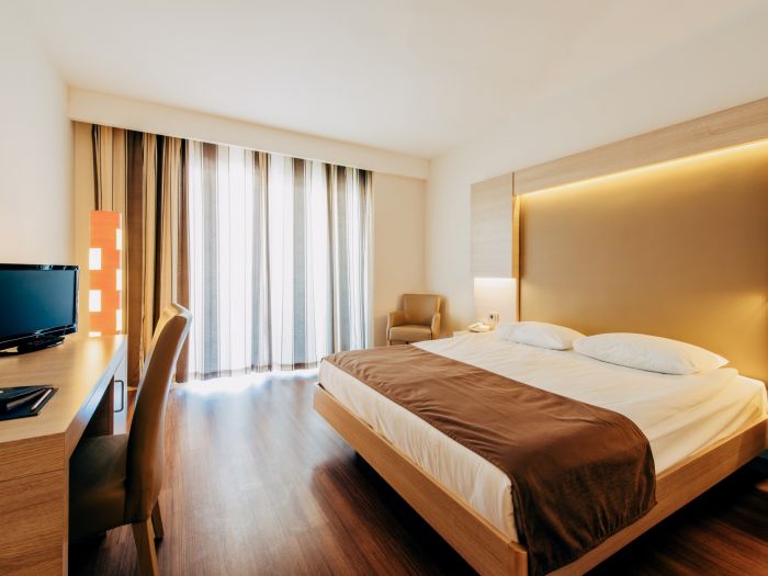Хотелът разполага с 421 стаи, разположени в една основна 8-етажна сграда. Всички стаи са оборудвани с климатик, телевизор, телефон, баня с душ, мини - бар (безалкохолни напитки – зарежда се при пристигане - безплатно), сейф в стаята (безплатно), Почистване на стаите - всеки ден, смяна на спалното бельо - 3 пъти седмично.
