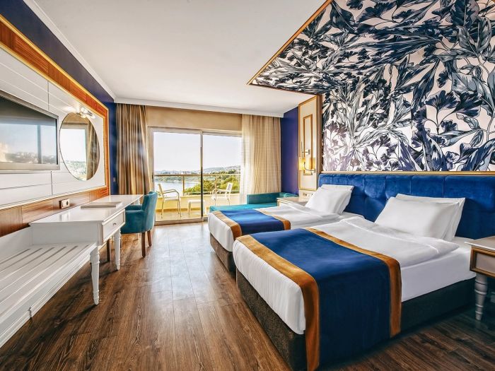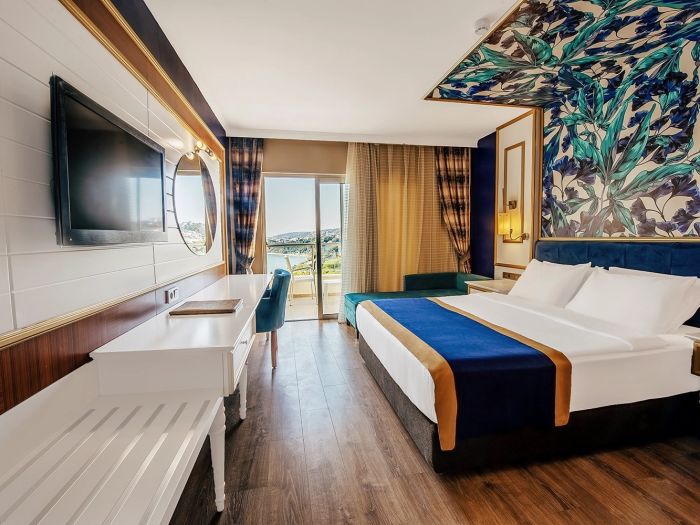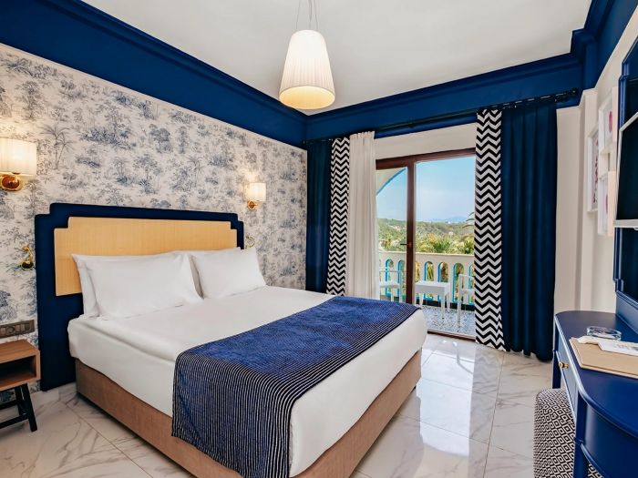 Стаи Main Building: Standard room land view (изглед суша - 24,8 м2), Standard room sea view (изглед море - 24,8 м2), Family Room (2 спални, баня - 39,68 м2).