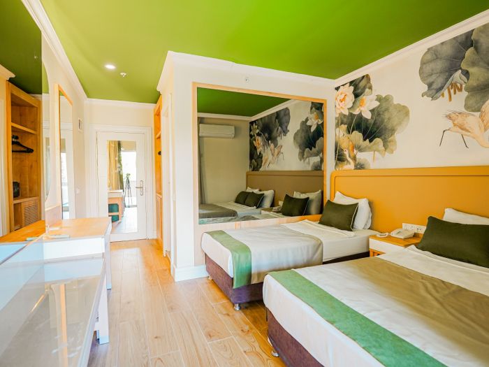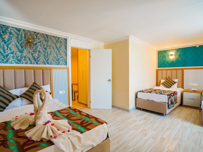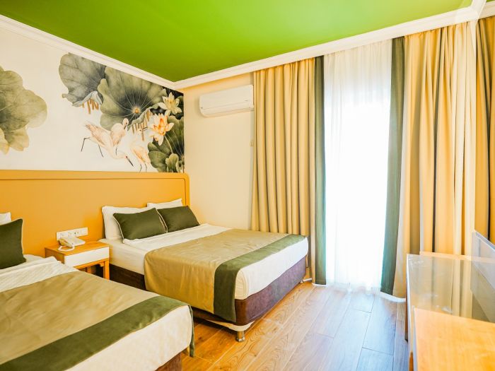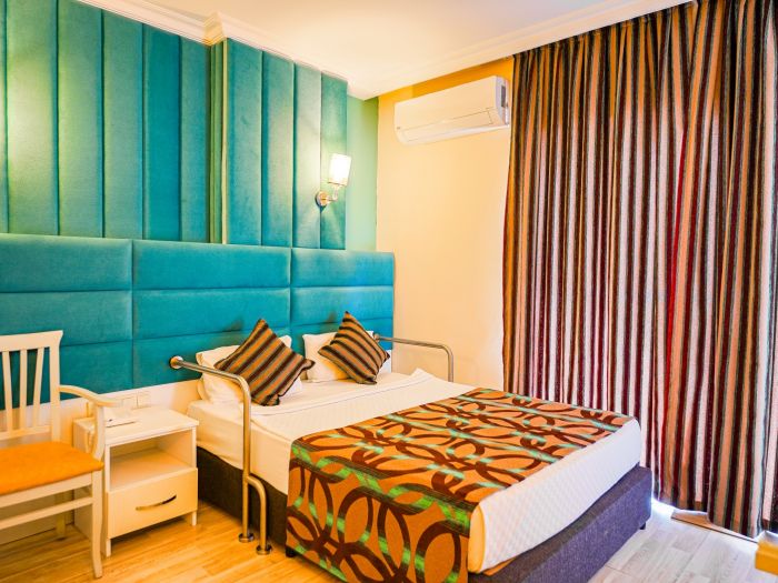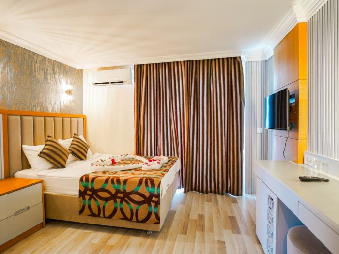 Намира се на 90 км от летище Анталия, на 105 км от центъра на Анталия, на 35 км от центъра на Алания, на 30 км от центъра на Сиде, на брега на морето. Построен 2003 г., на обща площ от 16 000 м2. Реновиран 2012 г.